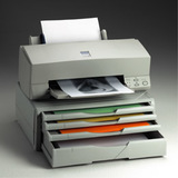 Für Tintenstrahldrucker und Faxgeräte. Die große Schublade ermöglicht die Ablage von bis zu 300 Blatt Papier. Die drei flacheren Schubfächer sind ideal für hochwertige Photopapiere, Folien, Brief- umschläge usw. Die Kabelführung auf der Rückseite organisiert die Strom- und Verbindungs-kabel. Antirutschfüße sorgen für einen sicheren Stand. Maße (LxBxH): 416x280x141 mm