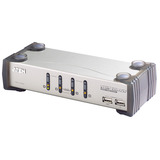 4-Port KVM Switch USB-DVI-D/A- Audio-USB2.0 Hub incl. Kabelset Steuert 2 DVI/USB-PC mit voller Audio-Unterstützung Port Auswahl via Switching Software Client, definierbaren Hotkeys oder Select Taste Die USB-Ports für Keyboard/Mouse entsprechen einem USB2.0 Hub Separate Portschaltung für KVM, USB und Audio Unterstützt Videosignale DVI-I Digital und DVI-I Analog Multi-Plattform Unterstützung HDCP kompatibel Auto Scan Modus Im Lieferumfang: 4 x Kabelsatz 1.2 m, 1 x Software-CD, 1 x Netzteil