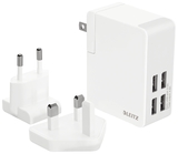 Leitz Complete 4x USB Reise-Netzteil, 24 W · High-Speed Reisenetzteil mit 4 USB-Ausgängen, lädt 4 Mobilgeräte gleichzeitig. Mit 3 Adaptern für UK, USA und Europa. · 24 Watt. EU-, UK- und US-Stecker. Für Tablet PCs und Smartphones. · Intelligentes Ladegerät - passt sich automatisch an das angeschlossene Mobilgerät an und liefert optimale Stromversorgung · Kompatibel mit 110 ~240V Stromanschlüssen · 4 leistungsstarke USB-Ausgänge (jeder Ausgang 2.4A, 4 Ausgänge maximal 4.8A) für das gleichzeiti...