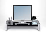 Diese schicke Flachbildschirm Workstation ist höhenverstellbar in 3 Stufen (7 / 9,5 / 12cm) für maximalen persönlichen Komfort. Die veränderbare Ablagefläche mit versetzbaren Aufbewahrungs- und Sortierelementen sorgt für Individualität. Die Laptop Slick-Slide Matte ermöglicht bequeme Aufbewahrung und Zugang zu Laptop und/oder Docking Station unter der Ablagefläche. Mit integriertem Kabelmanagement an der Rückseite. Der Ständer ist geeignet für Monitore bis 71,12cm (28") oder max. 18kg Gewicht...