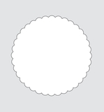 Siegelmarke in Form weißer Klebescheiben, mit gewelltem Rand, wasserlöslich gummiert.