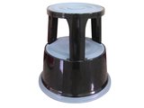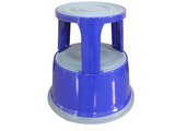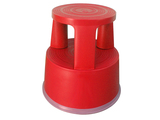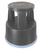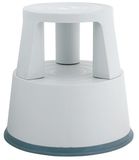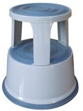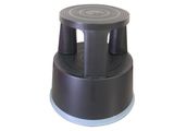 Trittboy mit Höhe 43 cm unbelastet, 41,5 cm belastet. Durch 3 federnd gelagerte, leichtgängige Gleitrollen in unbelastetem Zustand rollbar. Durchmesser oben 29,5 cm, Durchmesser unten 44,5 cm. Gummiummantelung unten dient als Möbelschutz. Die beiden Gummi-Trittflächen sorgen für sicheren Stand. Tragkraft: bis 150 kg.
