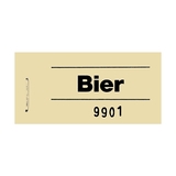 Gutscheinmarke "Bier" gelb. Aus Papier. 100 Abrisse auf Block, fortlaufend nummeriert. Links geheftet und perforiert. Mit Kartonrückwand. Größe: 60 x 30 mm