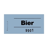 Gutscheinmarke "Bier" blau. Aus Papier. 100 Abrisse auf Block, fortlaufend nummeriert. Links geheftet und perforiert. Mit Kartonrückwand. Größe: 60 x 30 mm